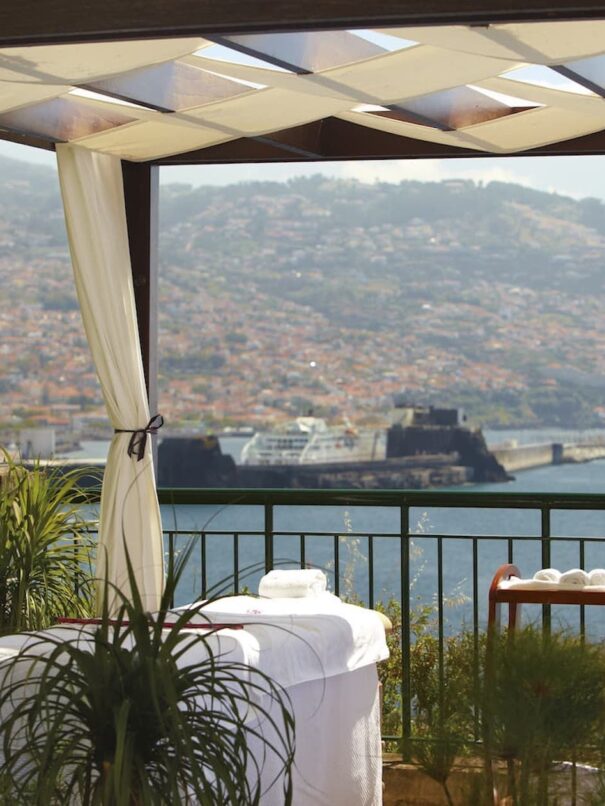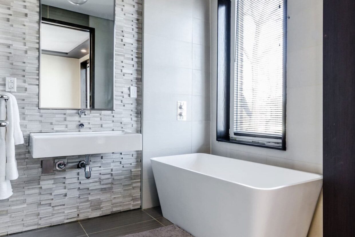It features a separate bedroom and living area, as well as a private balcony with stunning views of the city. The suite also includes a marble bathroom with a Jacuzzi tub, and a fully–equipped kitchen.